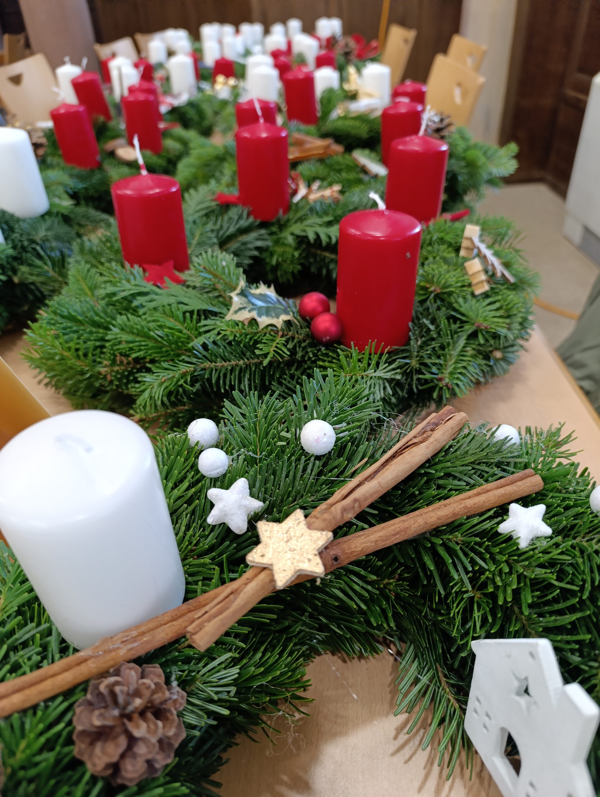 Ce samedi 29 novembre, le foyer Capito ressemblait à une fourmilière. C’était notre traditionnelle journée de fabrication des couronnes de l’Avent. Nous étions nombreux à nous retrouver pour ce temps de créativité et de partage.